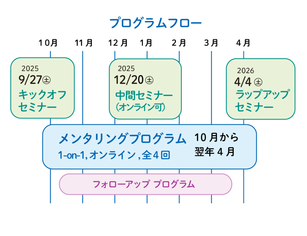 ● メンタリングと3回の対面セミナーのいずれにも参加できること